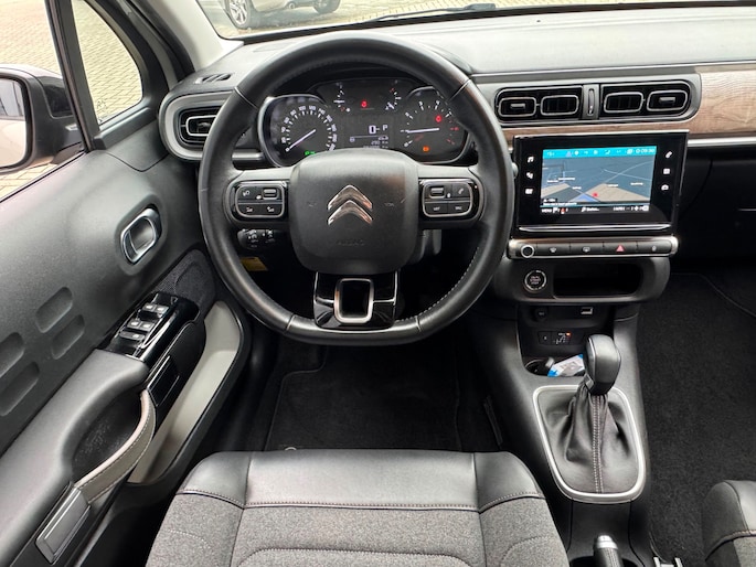 Nooit meer problemen bij achteruitrijden of inparkeren. De achteruitrijcamera houdt alles in de gaten! Waar u zelf ook bent, u staat altijd in contact met de auto via de app op uw smartphone. Zo controleert u uiteenlopende functies, ook op afstand. Het is veiliger om altijd uw ogen op de weg te houden en uw handen aan het stuur; daarom is dit voertuig uitgerust met een audiosysteem met DAB-ontvangst en een navigatiesysteem dat kan worden bediend via het stuurwiel of spraakbediening. Omdat u nu eenmaal niet overal ogen heeft, is deze Citroen C3 voorzien van een achteropkomend verkeer waarschuwing die registreert wanneer de afstand tot uw achterligger te krap is. Automatische airconditioning verwarmt of koelt het interieur met een druk op de knop. Deze Citroen is voorzien van regensensor, cruise control, automatisch dimmende binnenspiegel, lederen stuur, centrale deurvergrendeling met afstandsbediening en boordcomputer.