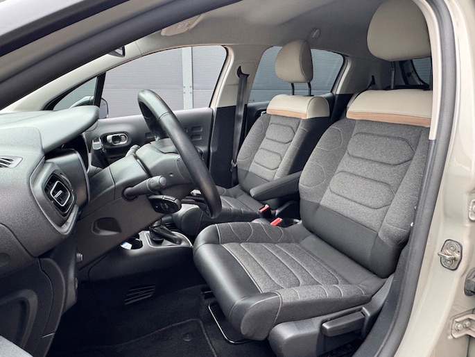 Pragmatisch en veilig als deze auto is, beschikt hij over diverse veiligheidssystemen. Dat de auto steeds meer taken van de bestuurder overneemt, merkt u bijvoorbeeld aan het systeem voor verkeersbord-detectie in deze auto. Het Lane-keeping systeem let constant op en waarschuwt of corrigeert als u onoplettend over de lijnen van de rijstrook gaat. Op een kop-staartbotsing zit niemand te wachten. Daarom is de forward collision warning onderweg constant alert en berekent via een sensor de veilige afstand tot voorliggers. Bovenop deze veiligheidsfeatures heeft deze Citroen bovendien dodehoekdetectie, accident avoidance system, hill hold functie, brake assist, vermoeidheidsherkenning en bandenspanningcontrolesysteem.