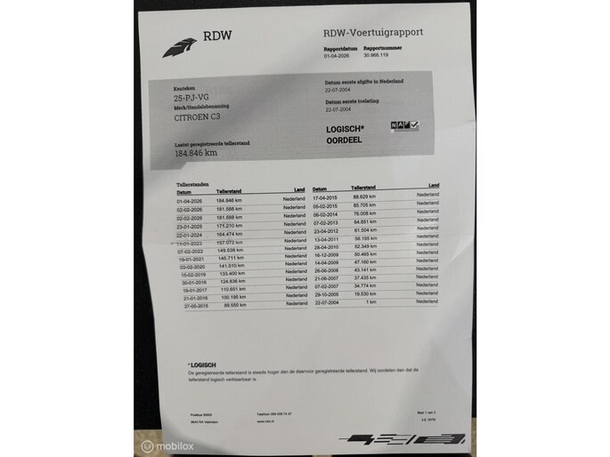 Kilometerstand gecontroleerd