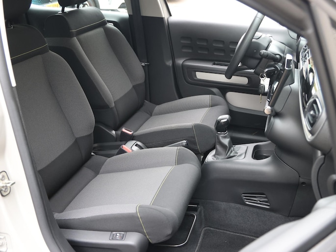 Pragmatisch en veilig als deze auto is, beschikt hij over diverse veiligheidssystemen. Dat de auto steeds meer taken van de bestuurder overneemt, merkt u bijvoorbeeld aan het systeem voor verkeersbord-detectie in deze Citroen. Het Lane-keeping systeem zorgt dat u mooi binnen de lijntjes blijft. Ongemerkt buiten de rijstrook komen is er niet meer bij. De forward collision warning geeft een botswaarschuwing als een aanrijding dreigt met een voorligger. Met voorzieningen als hill hold functie, brake assist, vermoeidheidsherkenning en bandenspanningcontrolesysteem, bent u altijd veilig onderweg.