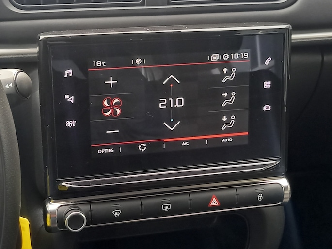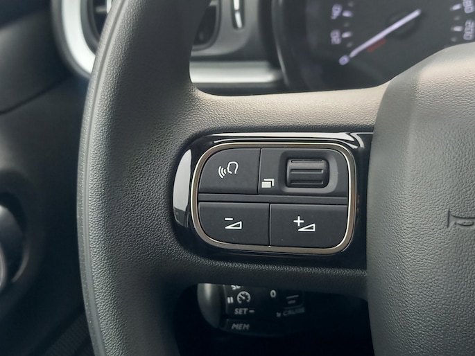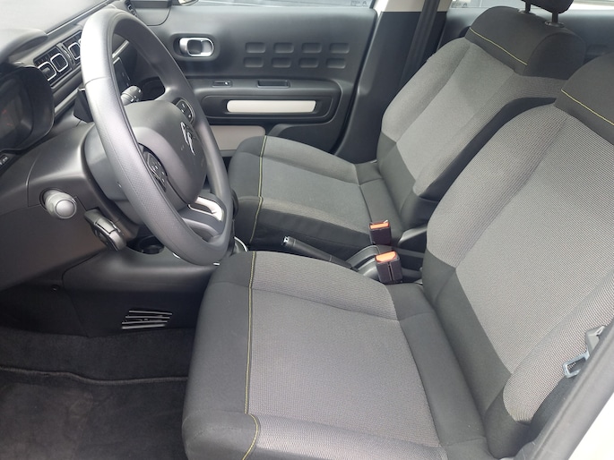 De nieuwste veiligheidssystemen komen in deze Citroën C3 samen. De actuele snelheidslimiet, een inhaalverbod en andere verkeersborden; de verkeersborddetectie ondersteunt je tijdens elke rit. Indien je onbedoeld de rijstrook lijkt te verlaten, reageert het Lane-keeping systeem meteen en corrigeert. Op een kop-staartbotsing zit niemand te wachten. Daarom is de forward collision warning onderweg constant alert en berekent via een sensor de veilige afstand tot voorliggers. Je bent mede dankzij hill hold functie, brake assist, vermoeidheidsherkenning en bandenspanningcontrolesysteem steeds veilig onderweg.