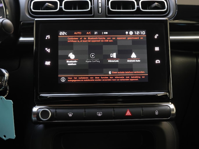 Handig en veilig: Connected Services. Alle vitale functies en data van de auto checkt u via de app op uw smartphone. Onderweg kunt u veilig genieten van het audiosysteem met dab-radio. Want in deze Citroen bedient u het vanaf het stuurwiel. De achteropkomend verkeer waarschuwing bewaakt de afstand tot achterliggers en geeft een signaal als er te weinig ruimte is. Het spreekt voor zich dat een auto als deze ook van automatische airconditioning is voorzien. De auto neemt u werk uit handen doordat hij zelf veel in de gaten houdt. Een regensensor en een automatisch inschakelbare verlichting nemen waar wanneer de ruitenwissers en het licht aan moeten. De uitrusting van deze Citroen is met cruise control, automatisch dimmende binnenspiegel, centrale deurvergrendeling met afstandsbediening, boordcomputer en verstelbaar stuur behoorlijk compleet.