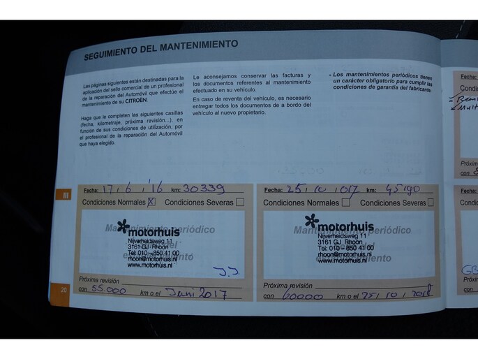 Onderhoudsboekjes: Aanwezig