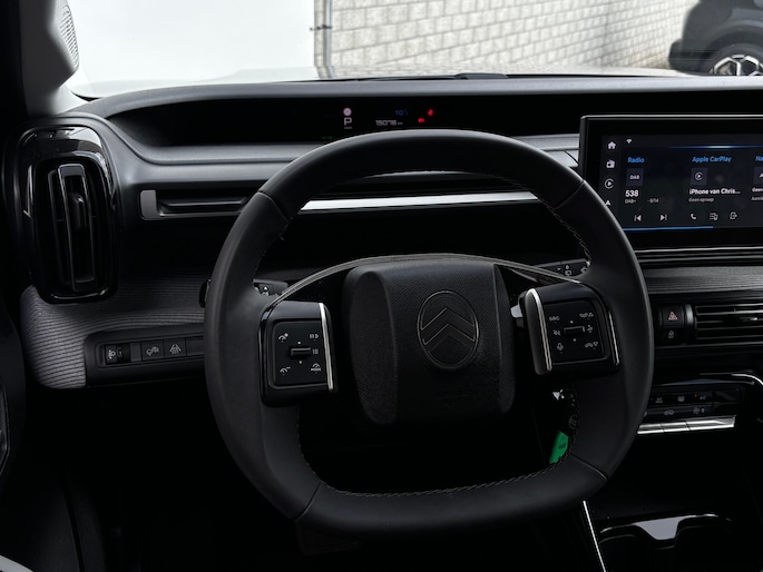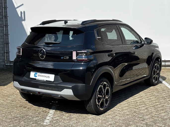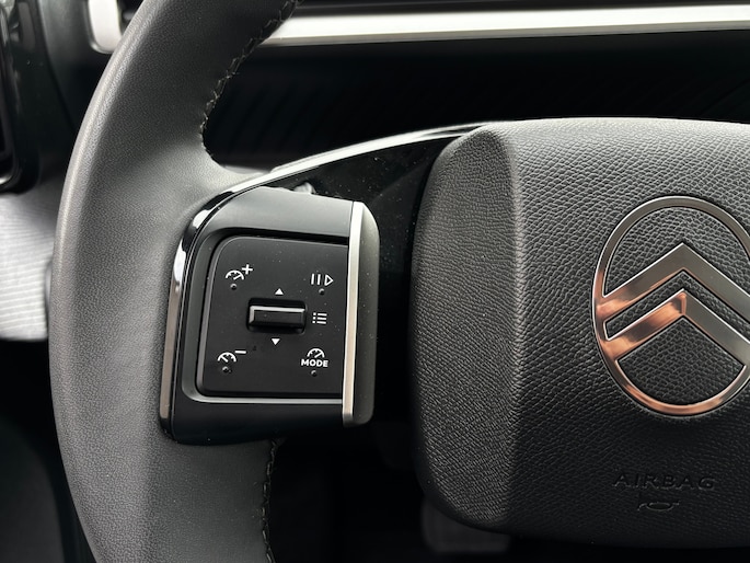 Wekt u zelf stroom op of kiest u voor een openbaar laadpunt? Met de Citroën ë-C3 kunt u overal terecht. Zo wordt elektrisch rijden wel heel erg aantrekkelijk! Met de combinatie van elektrische aandrijving en automatische transmissie manoeuvreert u soepel door het verkeer. De comfortstoelen zorgen voor een optimale zithouding onderweg. Tot de uitrusting van deze Citroën behoren ook 17 inch lichtmetalen velgen, LED koplampen, geluidsisolerende ramen, dakspoiler, in delen neerklapbare achterbank en LED-achterlichten. Een handige optie is de achteruitrijcamera. Achteruitrijden, inparkeren en manoeuvreren gaat gemakkelijker dan ooit. Spraaksturing betekent dat u verschillende functies met uw stem kunt bedienen. In één oogopslag weet u de complete systeemstatus van deze auto. Dankzij Connected Services. Ook praktisch: deze auto is voorzien van een eigen full map navigatiesysteem. Of het buiten nu warm is of koud, dankzij electronic climate control is het binnen altijd behaaglijk. De Citroën is standaard voorzien van: draadloos opladen, DAB ontvangst, regensensor, cruise control, automatisch dimmende binnenspiegel en centrale deurvergrendeling met afstandsbediening. In de Citroën ë-C3 heeft uw veiligheid en die van uw omgeving prioriteit. Onderweg worden ritfuncties naar keuze op de voorruit geprojecteerd met de head-up display. De actuele snelheidslimiet, een inhaalverbod en andere verkeersborden. De verkeersborddetectie ondersteunt u tijdens elke rit. Het Lane-keeping systeem let constant op en waarschuwt of corrigeert als u onoplettend over de lijnen van de rijstrook gaat. Bovenop deze veiligheidsfeatures heeft deze Citroën bovendien hill hold functie, vermoeidheidsherkenning, autonoom remsysteem en bandenspanningcontrolesysteem. Neem de stap naar elektrisch rijden! Maak een afspraak en we zetten 'm voor u klaar.