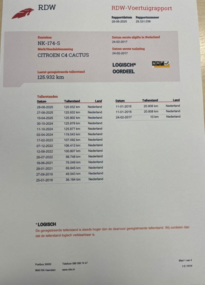Kilometerstand gecontroleerd
