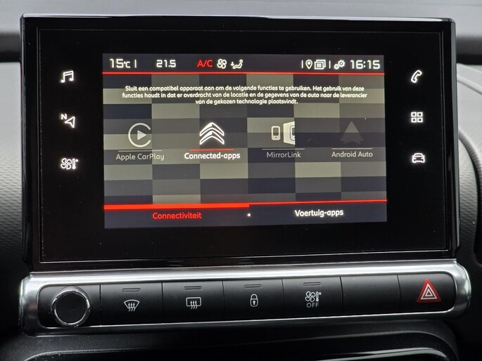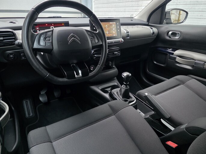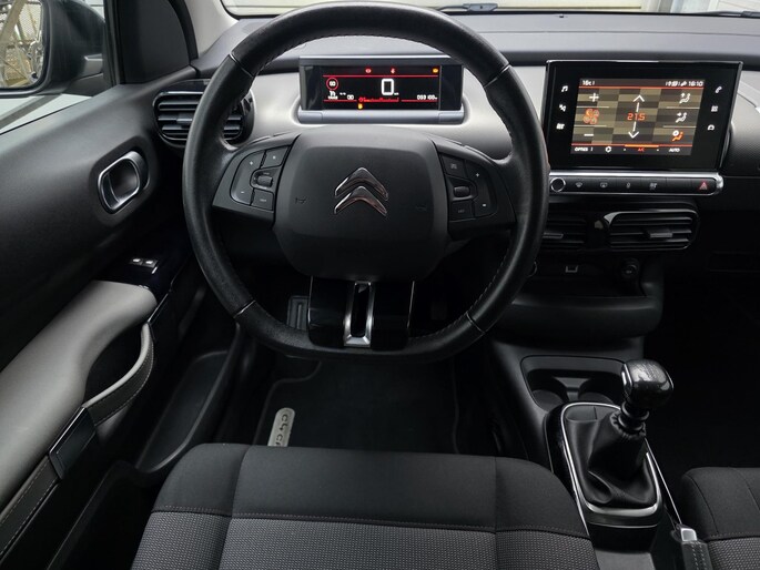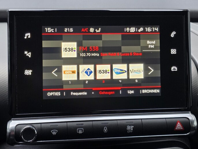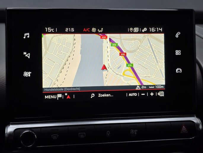 Kinderfietsje niet gezien bij het inparkeren? Dat gebeurt u nooit meer. Daar zorgt de achteruitrijcamera wel voor! Op deze auto zijn er ook parkeersensoren voor én achter aanwezig! De radio harder of zachter zetten of iemand uit uw contactenlijst bellen. Dankzij de spraakbediening doet u dit allemaal met uw stem. Met uw smartphone maakt u overal contact met de auto. Remote services geven direct inzicht in uiteenlopende functies en zijn op afstand te activeren. Het full map navigatiesysteem loodst u snel naar uw reisdoel. Nooit meer te warm of te koud. De automatische airconditioning zorgt altijd voor de temperatuur die u kiest. U bent in deze Citroen ook voorzien van DAB ontvangst, regensensor, cruise control, keyless entry & start met startknop, lederen stuur, isofix-aansluitingen en een lederen versnellingspook.