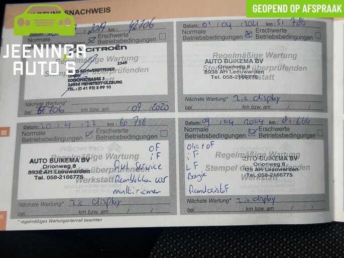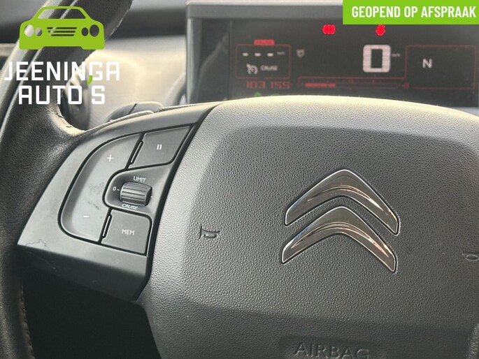 Kom maar, kom maar, kom maar... ho! Prettig hoor, zo'n achteruitrijcamera. Met de routebegeleiding van het navigatiesysteem kunt u zich volledig op het verkeer concentreren. Het comfort wordt verhoogd door de aanwezige automatische airconditioning. Met de audiobediening op het stuur bedient u het audiosysteem zonder uw ogen van de weg te halen. Het luxeniveau in deze Citroen is niet alleen gericht op comfort, maar ook op uw veiligheid. Tal van sensoren helpen u om de omgeving in de gaten te houden. De automatisch inschakelbare verlichting zorgt dat automatisch de verlichting wordt ingeschakeld als het donker wordt, wat bijvoorbeeld in tunnels erg handig is. En de regensensor zet de ruitenwissers aan zonder dat u eraan hoeft te denken. Wat u ook in deze auto kunt vinden zijn cruise control, buitentemperatuurmeter, lederen stuur, isofix-aansluiting, centrale deurvergrendeling met afstandsbediening en boordcomputer.