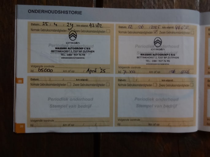 Onderhoudsboekjes: Aanwezig