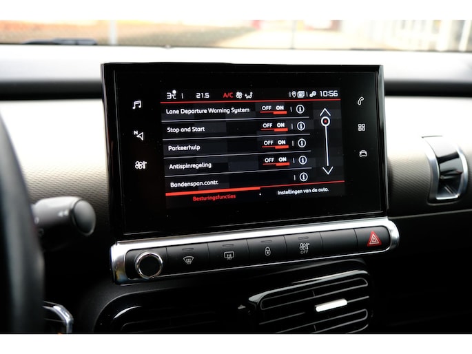Pragmatisch en veilig als deze auto is, beschikt hij over diverse veiligheidssystemen. Bij de veiligheidssystemen van deze Citroen hoort ook de verkeersbord-detectie. Die leest tijdens het rijden als het ware met u mee en attendeert u op de significante verkeersborden langs en boven de weg. Het Lane-keeping systeem let constant op en waarschuwt of corrigeert als u onoplettend over de lijnen van de rijstrook gaat. De forward collision warning reduceert het gevaar van een botsing met een voorligger significant. Met voorzieningen als accident avoidance system, hill hold functie, brake assist, vermoeidheidsherkenning en bandenspanningcontrolesysteem, bent u altijd veilig onderweg.