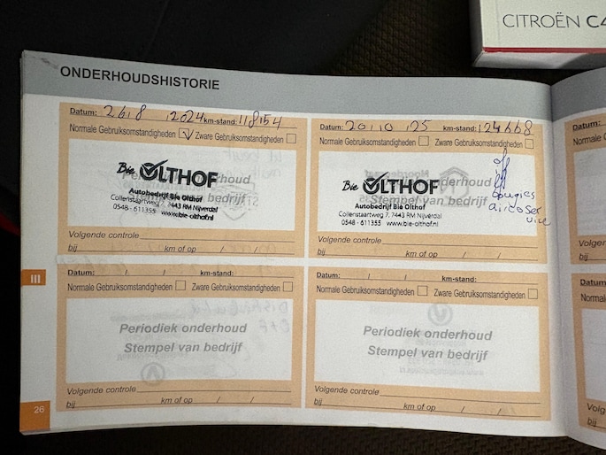 Onderhoudsboekjes: Aanwezig