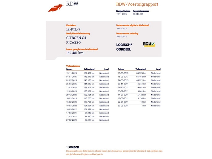 Kilometerstand gecontroleerd