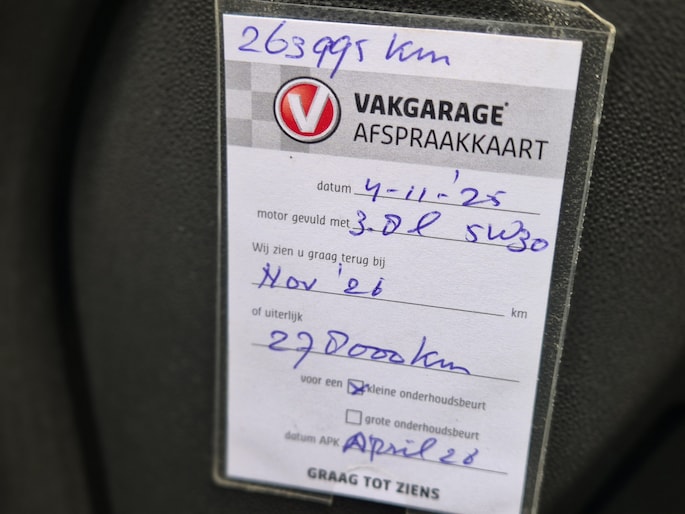 • Afleverbeurt conform onderhoudsschema met volle tank.