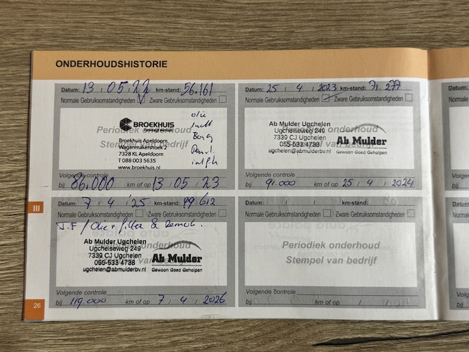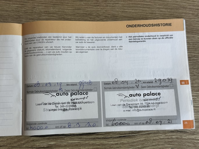 Onderhoudsboekjes: Aanwezig