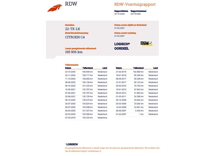 Kilometerstand gecontroleerd