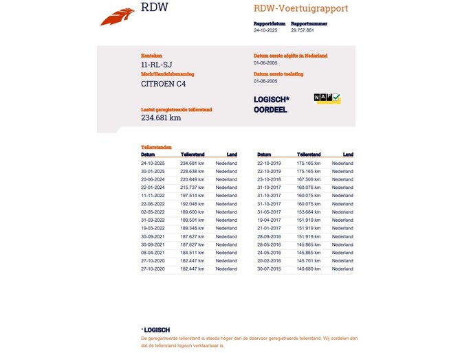 Kilometerstand gecontroleerd