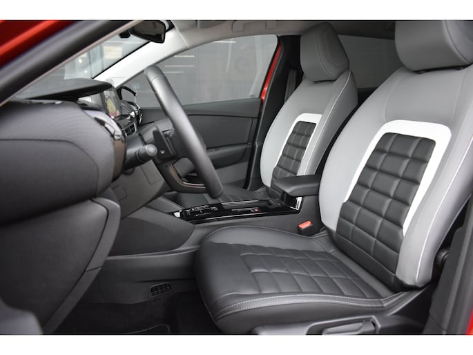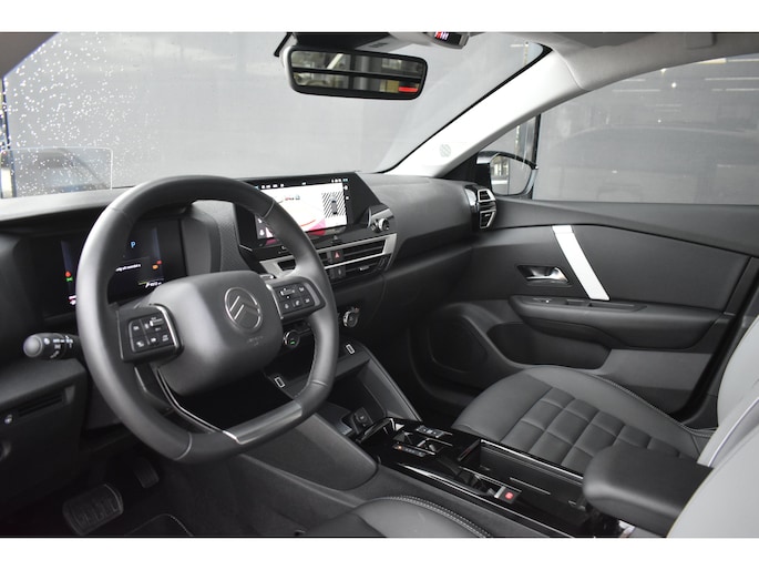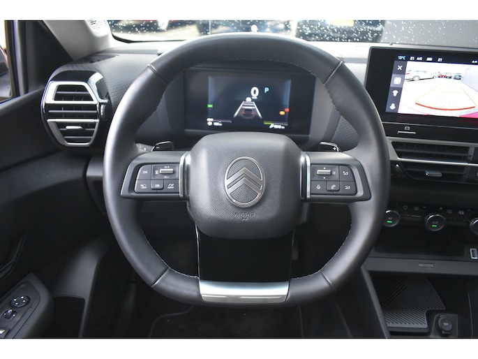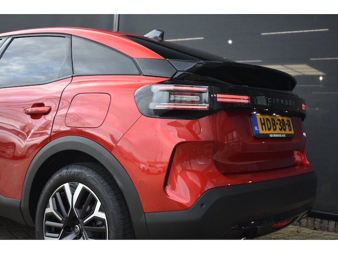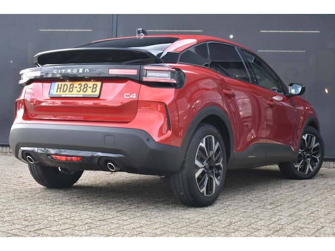 Deze Citroën C4 maakt een voortreffelijke indruk. Hiermee mag je gezien worden in de stad én op de weg! Deze auto is bijna nieuw, ondanks dat hij uit 2025 komt; hij heeft slechts 9310 kilometer afgelegd. Deze Citroën C4 is voorzien van zowel een elektromotor als een verbrandingsmotor. Ideale combi! Met zijn lederen bekleding is deze auto comfortabel en stijlvol. De verwarmbare voorstoelen zijn een heerlijke extra optie, waarmee u uzelf en uw bijrijder een groot plezier doet. Prettig zitten maakt elke rit ontspannen dankzij de comfortstoelen. Als het buiten koud wordt, voelt zo'n verwarmd stuurwiel heerlijk aan. Ook 18 inch lichtmetalen velgen, Full LED koplampen, geluidsisolerende voorruit, elektrische handrem, in delen neerklapbare achterbank en bestuurdersstoel met lendensteunverstelling horen tot de voorzieningen op deze auto. Alle ritinformatie en communicatie is gebundeld in één overzichtelijk digitale dashboard. Het inventieve 360 graden camerasysteem op deze auto heeft de functie om u assistentie te bieden in nauwe ruimtes en straten, waar het achteruit rijden vaak een uitdaging is. Adaptive cruise control is veilig en comfortabel. De snelheidsregelaar houdt automatisch afstand tot het voertuig dat voor u rijdt. Gemak dient de mens. Dankzij de spraaksturing bedient u de belangrijkste functie met uw stem. Met Connected Services wordt iedere rit nóg veiliger. Deze auto is voorzien van full map navigatiesysteem, achteropkomend verkeer waarschuwing, automatische airconditioning, draadloos opladen, DAB ontvangst en regen- en lichtsensor. De automatische veiligheidssystemen in deze Citroën fungeren als een extra paar ogen. En dat niet alleen, ze kunnen ook actief ingrijpen, om zo u en uw passagiers te beschermen. U hoeft uw ogen niet meer van de weg te halen om dashboardinformatie te checken. De head-up display projecteert het rechtstreeks in uw zichtveld. Verkeersborddetectie herkent tijdelijke en permanente verkeersborden langs en boven de weg. Het Lane-keeping systeem zorgt dat u mooi binnen de lijntjes blijft. Ongemerkt buiten de rijstrook komen is er niet meer bij. Met voorzieningen als driver alert systeem, dodehoekdetectie, hill start assist, brake assist, vermoeidheidsherkenning en bandenspanningcontrolesysteem, bent u altijd veilig onderweg. Een proefrit levert het bewijs. Neem contact op en we maken een afspraak!