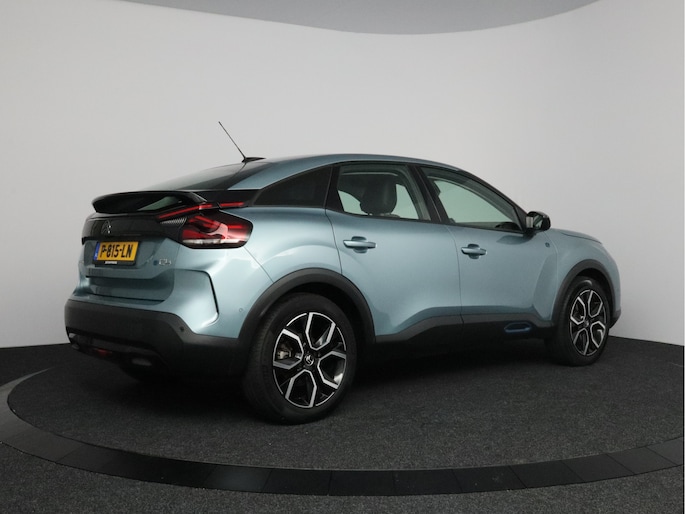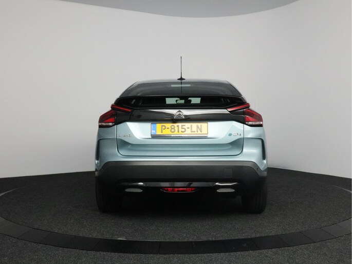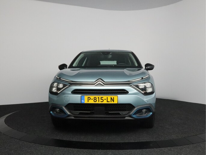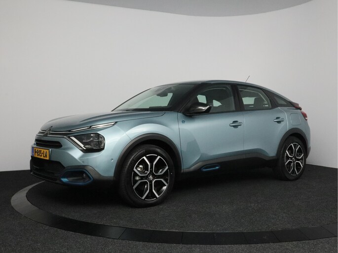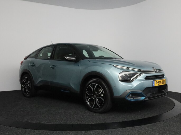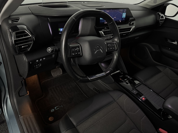 Milieubewust rijden en elke kilometer genieten. Het kan met deze elektrische Citroën Ë-C4. De elektromotor laat jou geluidloos over de weg gaan. Wat een verademing, en zoveel power ook nog! Maximaal comfort en stijl krijg je dankzij het lederen interieur. Relaxt rijden? Dan zijn de comfortstoelen een regelrechte extra. Bij de uitrusting van deze auto horen onder meer 18 inch lichtmetalen velgen, Full LED koplampen, adaptief dempingsysteem, geluidsisolerende ramen, in delen neerklapbare achterbank en verstelbare lendensteunen.