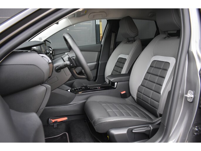 Modern design en bijzondere techniek bepalen de kwaliteiten van de hybride Citroën C4. Op de teller van deze auto staat slechts 4000 kilometer. Op een dag rijden we allemaal elektrisch. Maar voor nu is de hybride oplossing van elektrisch en benzine ideaal! Zo ook bij deze Citroën C4. Comfort? Luxe? Stijl? Allemaal meegeleverd in de vorm van het lederen interieur. Koude start? Niet met de verwarmbare voorstoelen! De comfortstoelen zorgen voor een optimale zithouding onderweg. U wordt in deze auto ook getrakteerd op 18 inch lichtmetalen velgen, Full LED koplampen, geluidsisolerende ramen, in delen neerklapbare achterbank en verstelbare lendensteunen. Wat een gemak, die achteruitrijcamera. Alles in beeld zonder capriolen. Pech of storing, altijd vervelend. Maar met Connected Services weet u direct wat eraan scheelt. En dus ook wat er moet gebeuren. Het full map navigatiesysteem en het audiosysteem (met DAB-ontvangst!) bedient u met knoppen op het stuur of met gesproken commando's. De kans op een kop-staart botsing wordt sterk gereduceerd door het systeem van achteropkomend verkeer waarschuwing. Tot de standaard uitrusting van deze auto hoort ook automatische airconditioning. Extra opties op deze auto zijn: regensensor, cruise control, keyless entry, lederen stuur en lederen versnellingspook. Aan boord van deze Citroën houden verschillende geavanceerde systemen voor u de weg in de gaten. Ze waarschuwen u voor noodsituaties en kunnen in een aantal gevallen ook zelf ingrijpen. De actuele snelheidslimiet, een inhaalverbod en andere verkeersborden; de verkeersborddetectie ondersteunt u tijdens elke rit. Het Lane-keeping systeem zorgt dat u mooi binnen de lijntjes blijft. Ongemerkt buiten de rijstrook komen is er niet meer bij. Het laatste wat u wilt is dat u achter het stuur indommelt. Om dat te voorkomen is deze auto uitgerust met vermoeidheidsherkenning. De auto is ook uitgerust met hill hold functie, brake assist en bandenspanningcontrolesysteem. Als u meer wilt weten over deze auto, dan vertellen we u dat graag. Belt of mailt u ons vandaag nog?