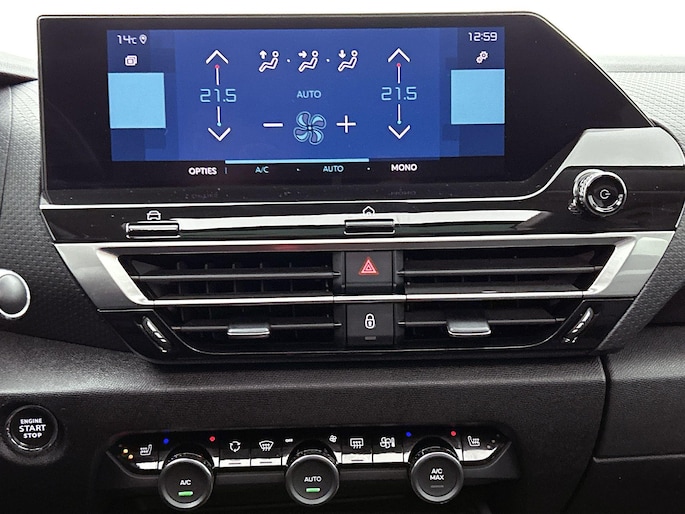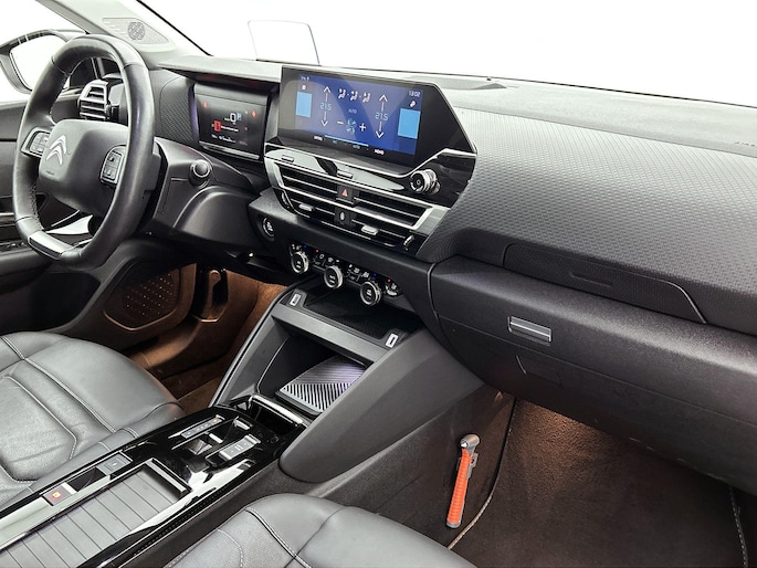 Voor een goed en duidelijk overzicht onderweg is het digitale dashboard uitermate slim ingedeeld. Het inventieve 360 graden camerasysteem op deze auto heeft de functie om u assistentie te bieden in nauwe ruimtes en straten, waar het achteruit rijden vaak een uitdaging is. Adaptive cruise control houdt de ingestelde snelheid vast en houdt automatisch afstand tot uw voorligger. Intelligente spraakbediening herkent uw commando's en voert opdrachten snel en soepel uit. Deze Citroen Ë-C4 is voorzien van remote services. Via uw smartphone bedient u diverse functies ook op afstand en krijgt u informatie over de status van uw auto. Wat u ook in deze auto kunt vinden zijn navigatiesysteem, achteropkomend verkeer waarschuwing, automatische airconditioning, DAB ontvangst, regensensor en keyless entry.