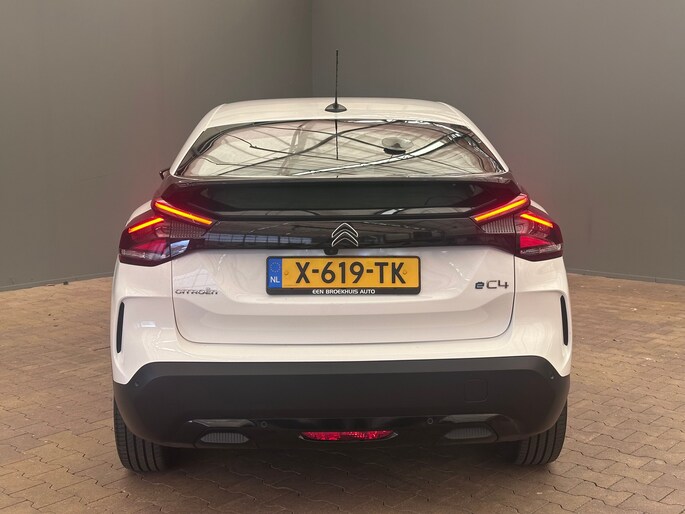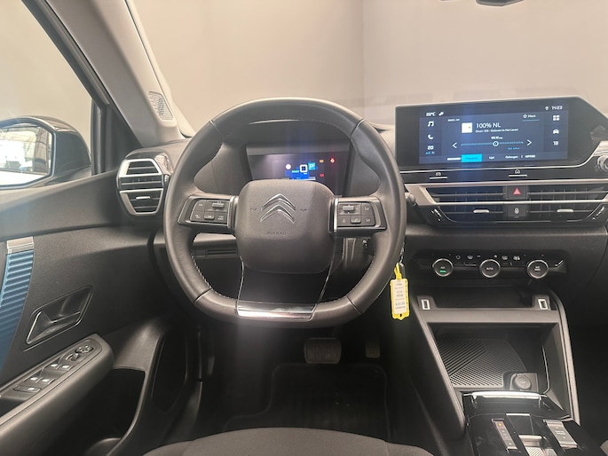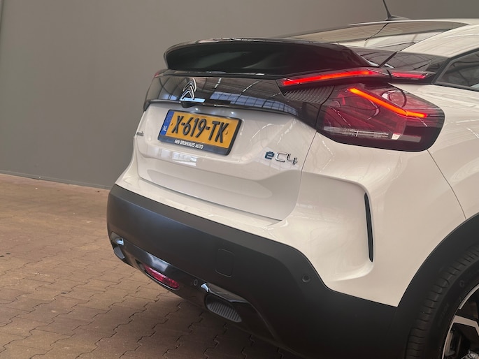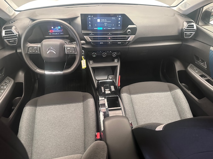 Druk het gaspedaal in en voel de fenomenale kracht van de elektromotor. In een elektrische auto rijdt u tegelijk dynamisch en ontspannen. Deze Citroën ë-C4 is van het bouwjaar 2024 en heeft 40926 kilometer op de teller staan. Geruisloos genieten tegen lage kosten? Dan is deze elektromotor iets voor u! Fijn plusje, zeker in de kille dagen, is het verwarmd stuurwiel. Ook 18 inch lichtmetalen velgen, Full LED koplampen, adaptief dempingsysteem, geluidsisolerende ramen, in hoogte verstelbare passagiersstoel en in delen neerklapbare achterbank horen tot de voorzieningen op deze auto. Het digitale dashboard zorgt voor een super functionele display van reisinformatie. Een vergeten muurtje, een verborgen paaltje? Dat gebeurt niet meer, dankzij de achteruitrijcamera. Adaptive cruise control houdt de ingestelde snelheid vast en houdt afstand tot het voertuig voor u. Had u de auto nou wel afgesloten? Met Connected Services checkt u het overal en altijd. In deze ë-C4 vindt u schakelaars op het stuur om het audiosysteem met dab-ontvangst te bedienen. En deze auto heeft ook achteropkomend verkeer waarschuwing, automatische airconditioning, regensensor en centrale deurvergrendeling met afstandsbediening als standaard uitrusting. De geavanceerde technologie in deze Citroën is in staat om onderweg het verkeer om u heen te monitoren en er op te reageren. Zo hebt u als het ware een automatische co-piloot aan boord. Dat de auto steeds meer taken van de bestuurder overneemt, merkt u bijvoorbeeld aan het systeem voor verkeersbord-detectie in deze Citroën. Indien u onbedoeld de rijstrook lijkt te verlaten, reageert het Lane-keeping systeem meteen en corrigeert. Forward collision warning waarschuwt bij een dreigende aanrijding en vermindert de gevolgen van een ongeval. In deze Citroën vinden we verder een dodehoekdetectie, hill hold functie, brake assist, vermoeidheidsherkenning en bandenspanningcontrolesysteem. Neem contact op voor een proefrit en ervaar de power van elektrisch rijden.