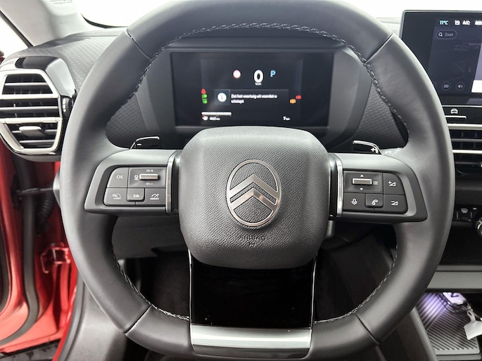 Met een gerust hart achteruitrijden? Dat kan, dankzij de achteruitrijcamera. Met adaptive cruise control houdt deze auto automatisch afstand tot uw voorligger. Uw smartphone is tegenwoordig de sleutel tot heel veel. Ook voor deze auto. Remote services, noemen we dat. Waar u ook bent, contact houden is een eitje. Een belangrijke veiligheidsvoorziening is de bediening van het audiosysteem en het full map navigatiesysteem, via knoppen op het stuur en middels spraakbediening. DAB-ontvangst geeft daarbij een kraakheldere ontvangst. Bij het wisselen van rijbaan kan een dode hoek ontstaan waardoor achterliggers te dichtbij kunnen komen. De achteropkomend verkeer waarschuwing geeft in dat geval automatisch een signaal. De uitrusting van deze Citroen is met automatische airconditioning, regensensor, keyless entry, lederen stuur en lederen versnellingspook behoorlijk compleet.