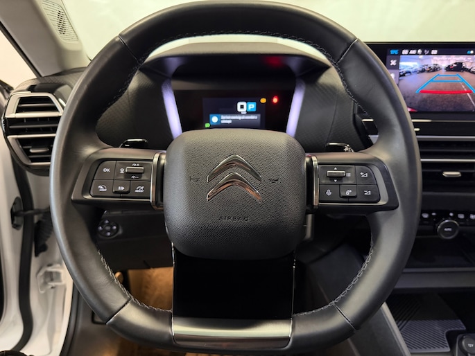 Dankzij het digitale dashboard leest u alle benodigde info gemakkelijk en overzichtelijk af. De achteruitrijcamera brengt precies in zicht wat zich achter u bevindt en toont een glashelder beeld op hoge resolutie. Een geluidssignaal waarschuwt hoeveel ruimte u nog heeft. Adaptive cruise control houdt de ingestelde snelheid vast en houdt afstand tot het voertuig voor u. Pech oplossen en zelfs voorkomen? Gaat eenvoudig. Via Connected Services heeft u alle data in de hand, gewoon op de smartphone! Het audiosysteem met DAB-ontvangst en het navigatiesysteem bedient u veilig met knoppen op het stuurwiel of met gesproken commando's. Deze Citroen is voorzien van achteropkomend verkeer waarschuwing, automatische airconditioning, sportstuur met schakelpaddels, regensensor, keyless entry en automatisch dimmende binnenspiegel.