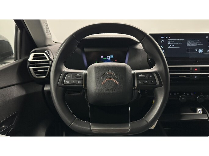 Milieubewust rijden en elke kilometer genieten. Het kan met deze elektrische Citroen Ë-C4 X. CO2-uitstoot? Met de elektromotor rijdt u stil en schoon! Het interieur is luxe uitgevoerd met leren bekleding. De comfortstoelen van deze Citroen Ë-C4 X staan bekend om hun goede zithouding. Ook is de auto voorzien van: 18 inch lichtmetalen velgen, Full LED koplampen, adaptief dempingsysteem, geluidsisolerende ramen, in delen neerklapbare achterbank en verstelbare lendensteunen.