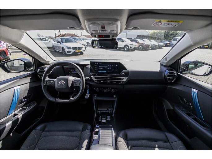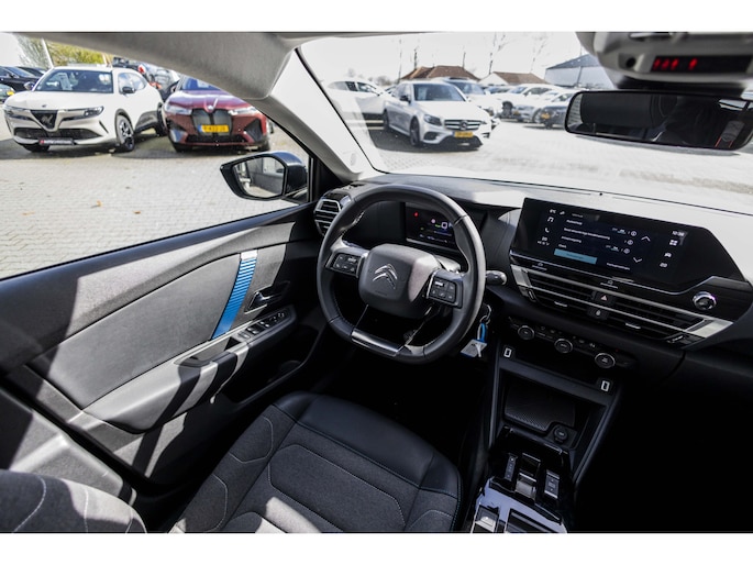 Verken de digitale wereld van mobiliteit waar het digitale dashboard alles biedt wat u nodig heeft om uw reis comfortabel te maken. Slimme spraakbesturing herkent gesproken opdrachten en voert ze uit. Deze Citroën Ë-C4 is 'connected'. Belangrijke functies worden permanent gemeten en zijn uit te lezen via een speciale app, ook op afstand. Het navigatiesysteem is uw vertrouwde gids, waarheen de reis ook gaat. Te weinig afstand tussen u en de achterligger? De sensoren registreren het direct en de achteropkomend verkeer waarschuwing geeft een signaal. De Citroën is standaard voorzien van: automatische airconditioning, audiobediening op het stuur, DAB ontvangst, parkeersensoren achter, regensensor en cruise control.