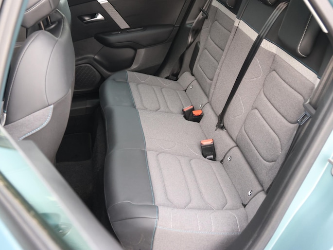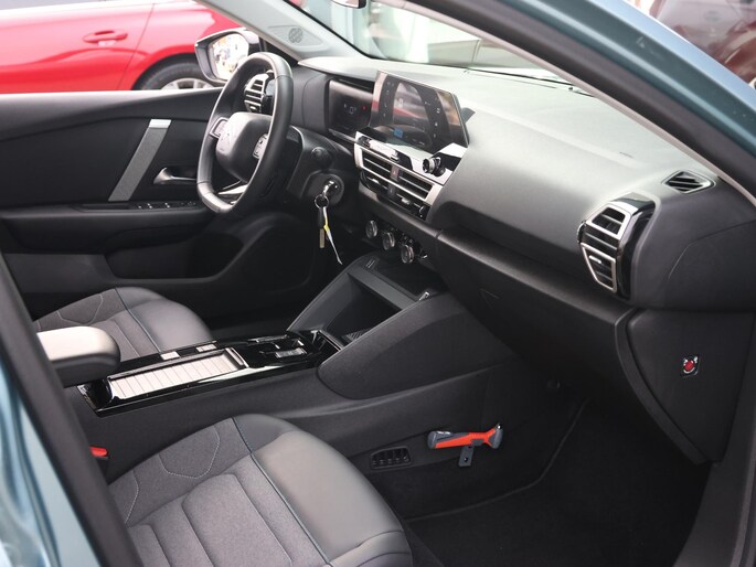 De nieuwste veiligheidssystemen komen in deze Citroen Ë-C4 samen. Belangrijk voor uw veiligheid en die van uw passagiers is de verkeersbord-detectie in deze auto. Ongemerkt buiten de rijstrook raken? Nee hoor, het Lane-keeping systeem waarschuwt en corrigeert. Het forward collision warning-systeem is constant alert en detecteert via sensor de afstand tot voorliggers. Wordt die te klein, dan volgt een automatische waarschuwing. De veiligheid van deze auto wordt verder verhoogd door hill hold functie, brake assist, vermoeidheidsherkenning en bandenspanningcontrolesysteem.