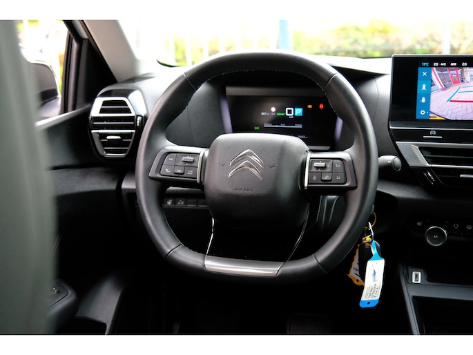 Het personaliseren van uw cockpitinterface is mogelijk met het digitale dashboard in deze auto. Geen nekkramp of spiegelwerk meer bij het achteruitrijden: de achteruitrijcamera kijkt en ziet alles! Met de ingebouwde spraakbediening kunt u de belangrijkste voertuigsystemen bedienen met stemcommando's. Als u regelmatig met een aanhanger of een fietsendrager op pad bent, is de afneembare trekhaak een praktische extra. Dankzij Connected Services weet u precies waar uw auto geparkeerd staat. Ook andere functies, zoals bandenspanning en brandstofniveau, zijn via de app altijd onder handbereik. De Citroen is standaard voorzien van: full map navigatiesysteem, achteropkomend verkeer waarschuwing, automatische airconditioning, DAB ontvangst, regensensor en cruise control.