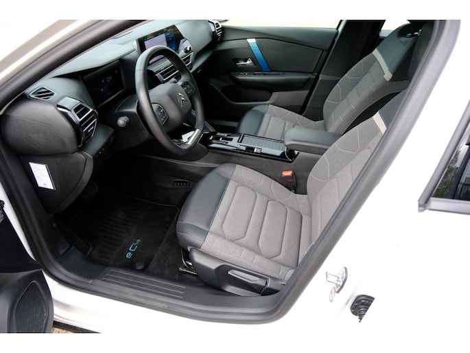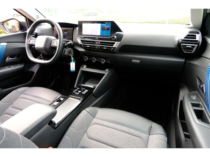 U rijdt gemakkelijk, comfortabel en zonder zorgen met deze Citroen Ë-C4 X. Met zijn lederen bekleding is deze auto comfortabel en stijlvol. De comfortstoelen van deze Citroen Ë-C4 X staan bekend om zijn goede zithouding. Bij deze Citroen Ë-C4 X is aan alles gedacht, tot en met een verwarmd stuurwiel aan toe. Tot de uitrusting behoren ook 18 inch lichtmetalen velgen, warmtewerend glas, LED-dagrijverlichting, in delen neerklapbare achterbank en verstelbare lendensteunen.