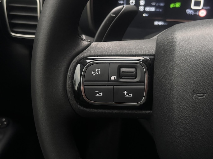 De indeling van het digitale dashboard is zo ingericht dat u met één blik precies weet wat u weten wilt. Met de 360 graden camera kunt u elk obstakel of gevaar rondom de auto detecteren, wat uw veiligheid verhoogt. Als u de adaptive cruise control inschakelt, regelt de auto zelf de snelheid en de afstand tot de auto voor u. Wat is de onderhoudsstatus van deze auto? U checkt het snel, simpel en overal via uw smartphone. Deze Citroen is voorzien van spraakbediening voor het full map navigatiesysteem en voor het audiosysteem met DAB-ontvangst. Maar u kunt ook de knoppen op het stuur gebruiken. De uitrusting van deze Citroen is met automatische airconditioning, regensensor, keyless entry, automatisch dimmende binnenspiegel, een in hoogte en diepte verstelbaar lederen stuur en isofix-aansluitingen behoorlijk compleet.