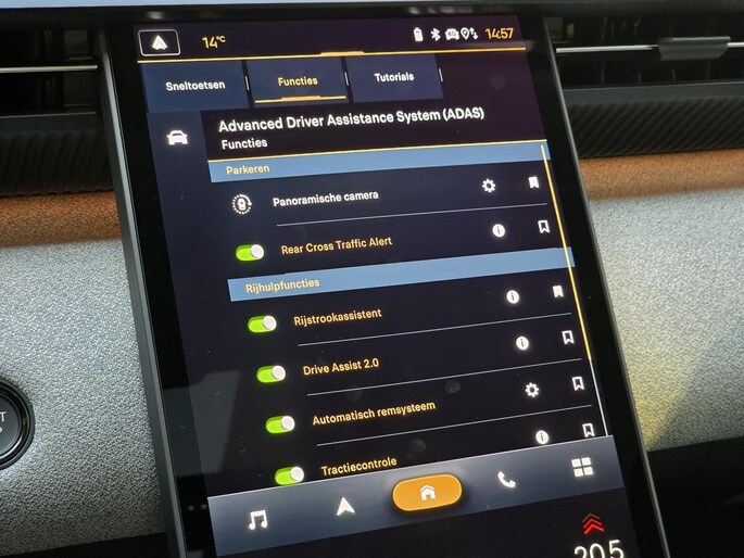 Aan boord van deze Citroen houden verschillende geavanceerde systemen voor u de weg in de gaten. Ze waarschuwen u voor noodsituaties en kunnen in een aantal gevallen ook zelf ingrijpen. U verliest de weg geen seconde uit het oog. De dashboardinfo wordt in uw zichtveld geprojecteerd door de head-up display. Dat de auto steeds meer taken van de bestuurder overneemt, merkt u bijvoorbeeld aan het systeem voor verkeersbord-detectie in deze auto. Keep your lane? Het Lane-keeping systeem zorgt er automatisch voor. Ook helpen het dodehoekdetectie, forward collision warning system, hill hold functie, vermoeidheidsherkenning, autonoom remsysteem en bandenspanningcontrolesysteem, uw rit tot een veilige rit te maken.