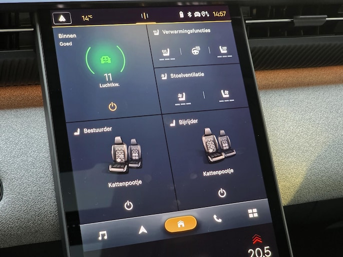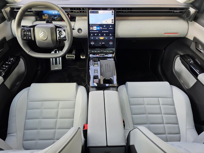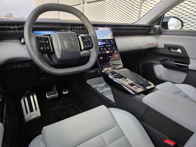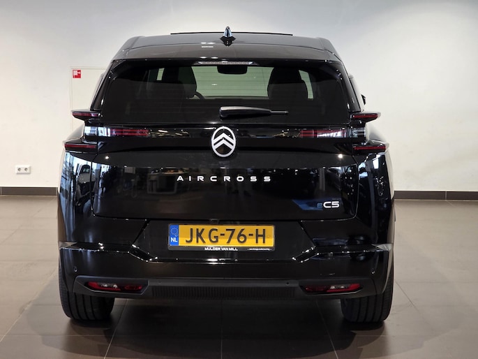 Hightech elektronica en emissievrij rijden komen samen in de Citroen C5 Aircross. Deze auto biedt een onvergelijkbare rijbeleving dankzij de volledig elektrische aandrijflijn. Het rijden met deze auto is werkelijk grenzeloos, want de actieradius is groot genoeg voor allerlei veelvoorkomende ritten en de tijd om de accu's op te laden is prima in te passen in uw dagelijkse bezigheden. Deze auto is bijna nieuw, ondanks dat hij uit 2025 komt; hij heeft slechts 4917 kilometer afgelegd. 's Winters komen de verwarmbare voorstoelen heerlijk van pas. En ze zijn ook nog eens voorzien van massagefunctie. De comfortstoelen van deze Citroen C5 Aircross staan bekend om zijn goede zithouding. Fun en functie wordt samengebracht in het elektrisch bedienbare glazen panoramadak. Fijn plusje, zeker in de kille dagen, is het verwarmd stuurwiel. De kwaliteit van de matrix LED-verlichting geeft het gevoel dat u bij daglicht rijdt. Ook is de auto voorzien van: 20 inch lichtmetalen velgen, extra getint glas, in delen neerklapbare achterbank en LED-achterlichten.