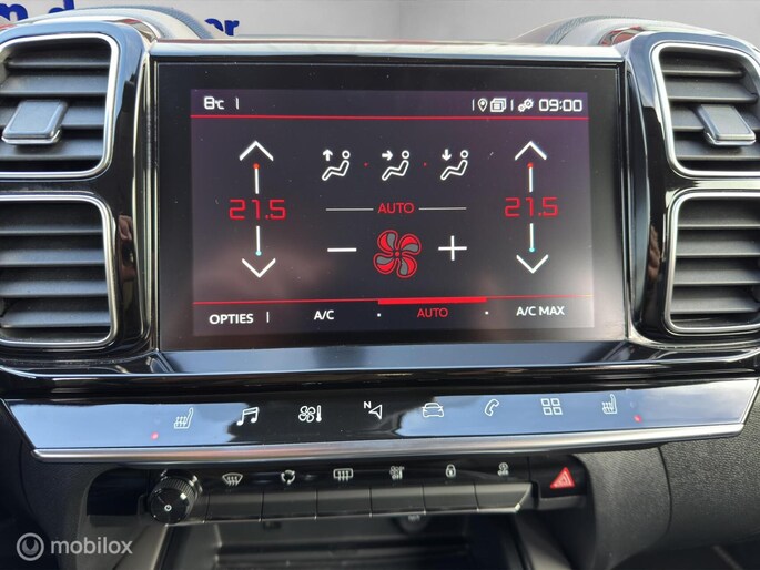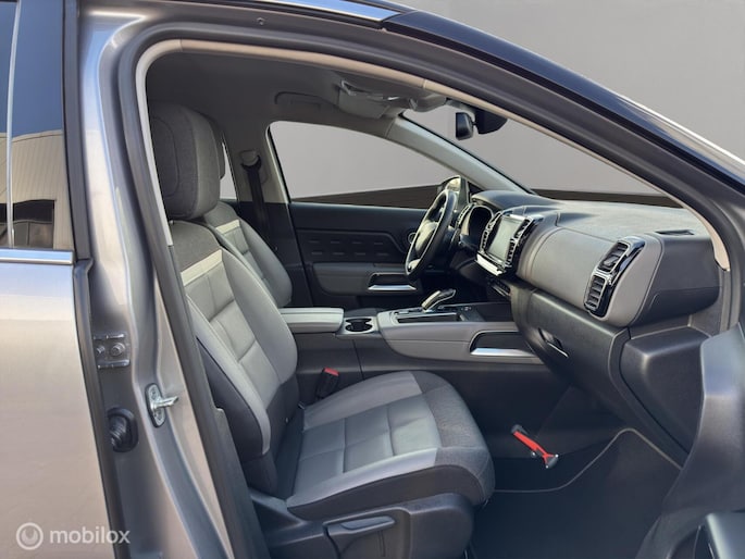 Met zijn dynamische eigenschappen belooft deze Citroen C5 Aircross u een heleboel rijplezier. Hij is ontwikkeld op een geavanceerd onderstel en biedt altijd een veilig weggedrag. De aandrijving van deze Citroen wordt verzorgd door een driecilinder benzinemotor en een automatische transmissie. Deze Citroen C5 Aircross legt bestuurder én bijrijder compleet in de watten met de verwarmbare voorstoelen. Nooit meer stramme spieren bij het uitstappen: daar zorgen de comfortstoelen voor! Met een druk op de knop gaat de elektrische achterklep open. De uitmonstering van deze auto wordt gecompleteerd door onder meer 19 inch lichtmetalen velgen, LED koplampen, halflederen bekleding, geluidsisolerende ramen, in delen neerklapbare achterbank en LED-achterlichten.