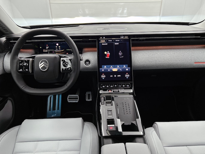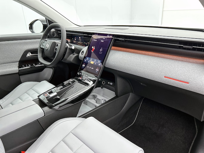 Nieuwe Citroën C5 Mild Hybrid 145pk Automaat zonder kilometers met registratie kenteken 31-03-2026. Normaal rijklaar: €46.700 nu voor € 41.700,- Uitgerust in het meest luxe ‘Max” uitrustingsniveau met o.a. Eclipse Blue metallic icm zwart dak | 19” lichtmetalen velgen | Adaptive Cruise Control met semi-automatic Lane Change Assistance | Matrix LED koplampen | Handsfree bediende achterklep | Verwarmbaar stuurwiel | 10-voudig elektrisch verstelbare en verwarmbare voorstoelen met ventilatie en massage | Parkeersensor v+a en 360 camera | Head Up Display | Keyless entry | Draadloos Apple Carplay / Android auto | Tot 8 jaar / 160.000 km fabrieksgarantie. Direct uit voorraad leverbaar.
