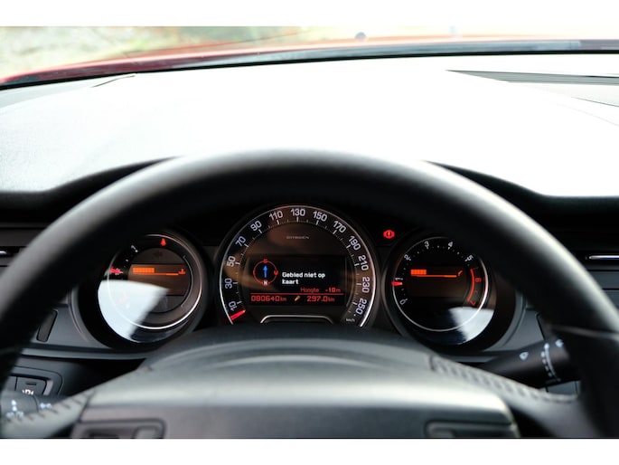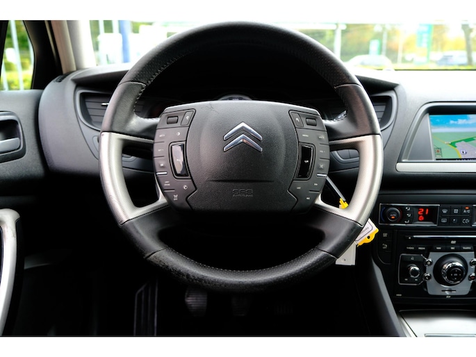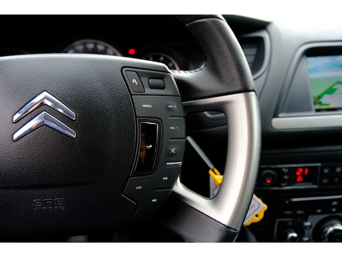 De snelste of zuinigste weg? Het navigatiesysteem aan boord wijst de juiste weg! U verwacht natuurlijk electronic climate control in deze auto, en die is er dan ook. Inparkeren en uitparkeren kost geen enkele moeite dankzij de parkeersensoren. Om de veiligheid onderweg te verhogen, heeft deze Citroen zowel een automatisch inschakelbare verlichting als een regensensor aan boord, zodat hij zelf de verlichting en de ruitenwissers kan inschakelen. Met ingeschakelde cruise control zit u ontspannen achter het stuur. De uitrusting van deze Citroen is met automatisch dimmende binnenspiegel, lederen stuur, centrale deurvergrendeling met afstandsbediening en boordcomputer behoorlijk compleet.