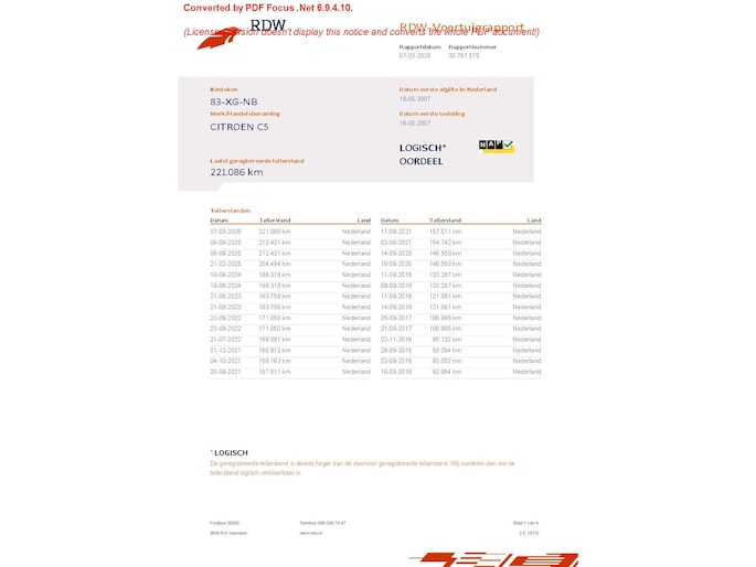 Kilometerstand gecontroleerd
