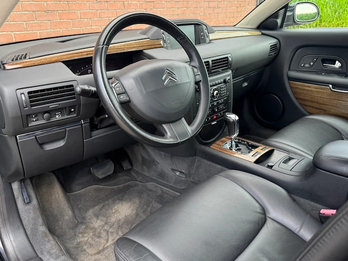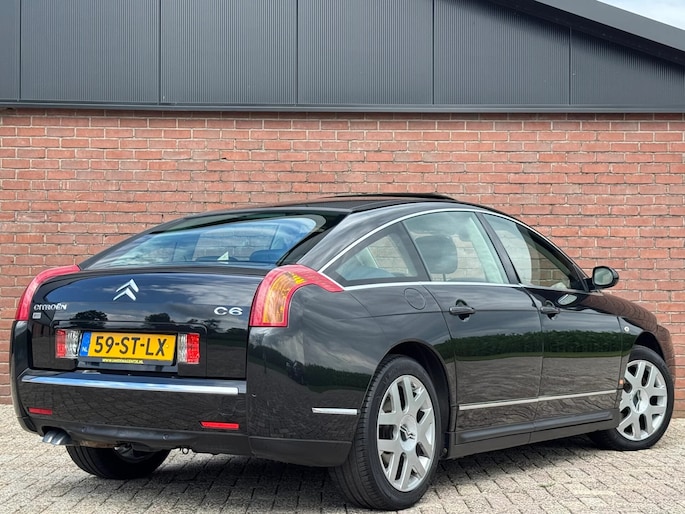 Bij het ontwerpen van de Citroën C6 stonden uw comfort en uw veiligheid centraal. Deze C6 is van het bouwjaar 2006. Een krachtige motor geeft deze auto zijn sportieve prestaties. Daglicht valt ongehinderd naar binnen via het elektrisch bediend glazen panorama dak en laat het lederen interieur mooi tot zijn recht komen. Comfort of luxe? Wij denken allebei! Neem plaats op de comfortabele stoelen. Dankzij de elektrische bediening en het geheugen is het eenvoudig om hierin de beste zitpositie te vinden. Dankzij de xenonverlichting profiteert u in het donker van een krachtige en heldere lichtbundel. Bij de zeer complete uitrusting van deze auto behoren ook 18 inch lichtmetalen velgen, geluidsisolerende ramen en snelheidsafhankelijke stuurbekrachtiging.