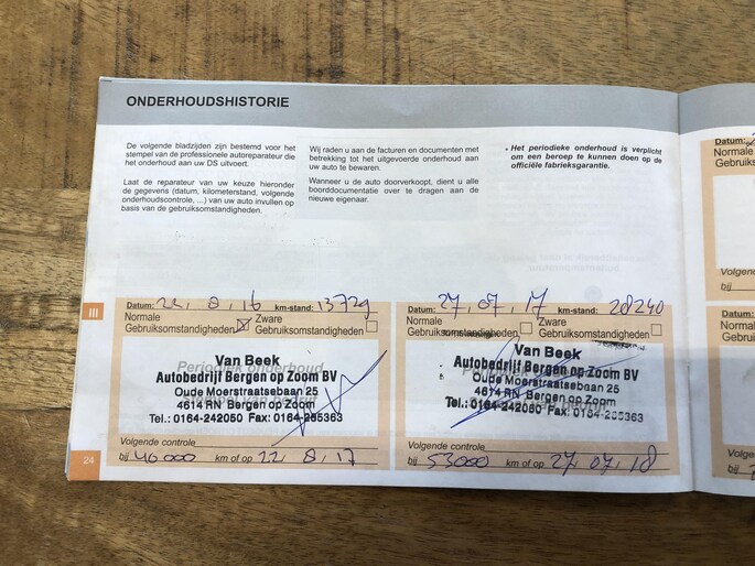 - Onderhoudsboekje (fysiek)