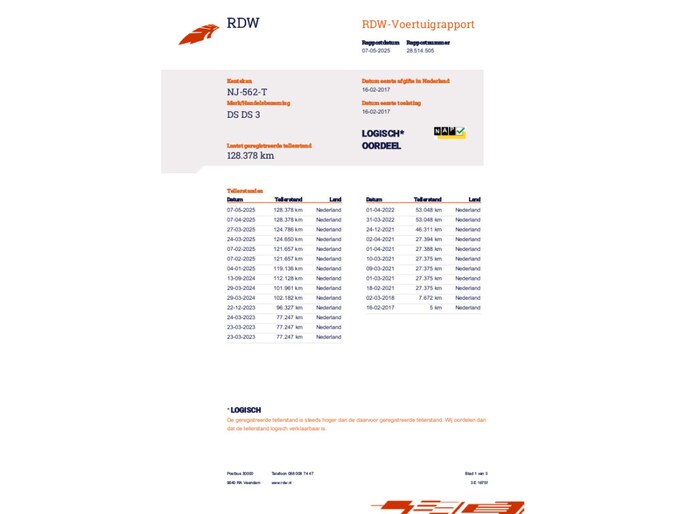 Kilometerstand gecontroleerd