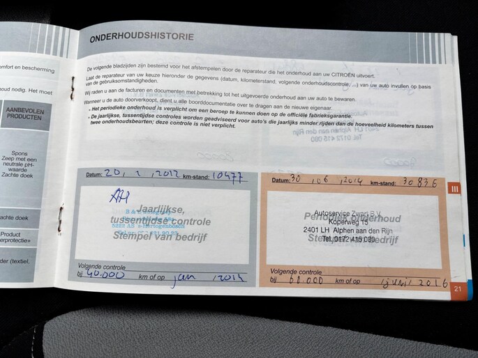 Onderhoudsboekjes: Aanwezig
