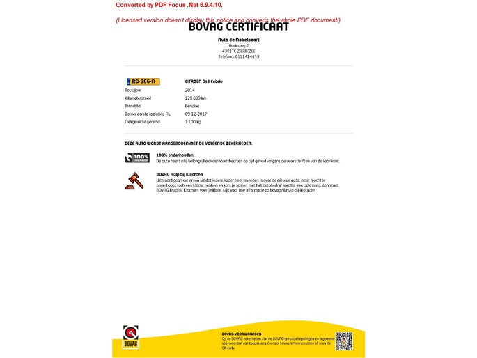BOVAG Afleverbeurt: Ja