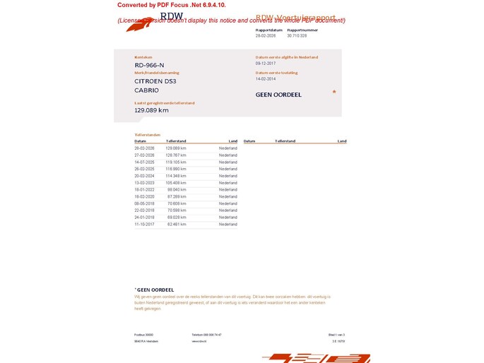 | Wegenbelasting/3mnd | € 119 - € 129 |
