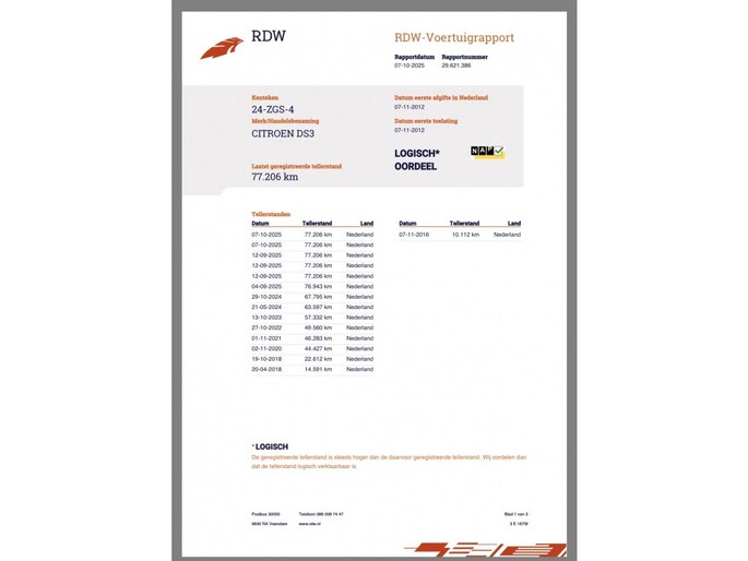 Kilometerstand gecontroleerd
