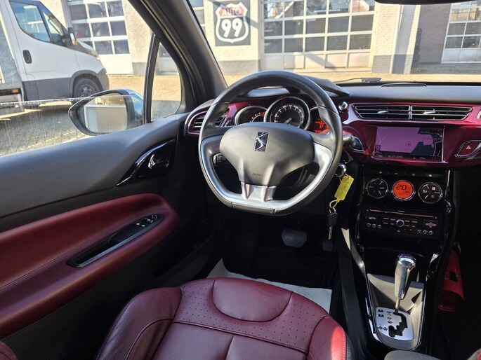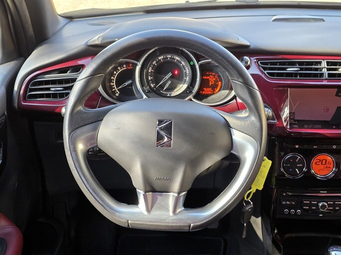 Het navigatiesysteem zorgt ervoor dat u snel en ontspannen op uw bestemming aankomt. Het comfort wordt verhoogd door de aanwezige automatische airconditioning. Een plekje vinden in de binnenstad is één, inparkeren is twee. Voor dat laatste heeft deze Citroën DS3 prima parkeersensoren die u een handje helpen. Het luxeniveau in deze Citroën is niet alleen gericht op comfort, maar ook op uw veiligheid. Tal van sensoren helpen u om de omgeving in de gaten te houden. De automatisch inschakelbare verlichting zorgt dat automatisch de verlichting wordt ingeschakeld als het donker wordt, wat bijvoorbeeld in tunnels erg handig is. En de regensensor zet de ruitenwissers aan zonder dat u eraan hoeft te denken. Stel de cruise control in op de gewenste snelheid en u rijdt comfortabel en zuinig. Ook automatisch dimmende binnenspiegel, centrale deurvergrendeling met afstandsbediening, boordcomputer en verstelbaar stuur horen tot de voorzieningen op deze auto.