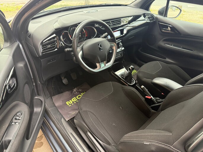 De DS3 pronkt met zijn sportieve grijze uitstraling en het aparte dakdesign dat zorgt voor een unieke uitstraling. Geniet van moderne luxe zoals airco, cruise control, elektrische ramen vóór, een boordcomputer en een radio-CD/MP3 speler. Veiligheid komt eerst: deze auto biedt maar liefst acht airbags, ABS, Brake Assist en ESP. Met extra getinte achterruiten en een sportonderstel voel je je thuis op elke weg.