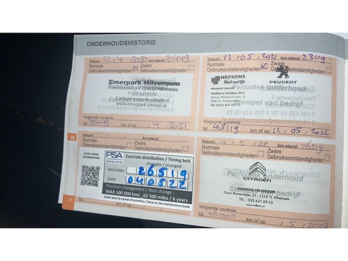 Onderhoudsboekjes: Aanwezig