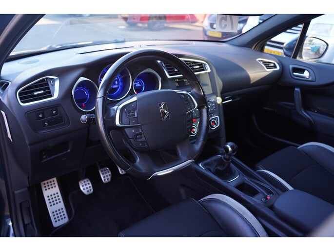 De Citroen DS4 is gebouwd met hoogwaardige techniek en maakt het rijden van lange ritten, maar ook korte stukjes, tot een feestje. Hij heeft een benzinemotor en een handgeschakelde vijfversnellingsbak. Stap achter het stuur en u voelt zich meteen thuis. Het interieur voelt weldadig aan. De bestuurdersstoel met zijn massagefunctie helpt u om tijdens iedere rit ontspannen en alert te blijven. In deze Citroen profiteert u onder andere ook van: 17 inch lichtmetalen velgen, halflederen bekleding, elektrisch inklapbare buitenspiegels, extra getint glas, in delen neerklapbare achterbank en verstelbare lendensteunen.