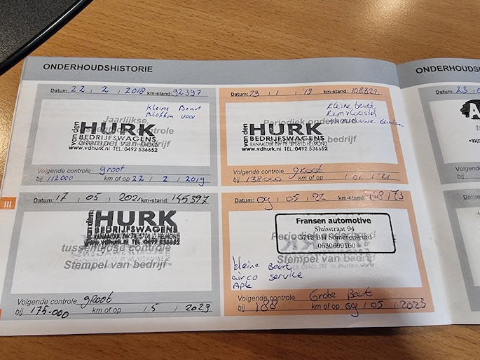 Onderhoudsboekjes: Aanwezig